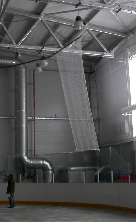 Поглощает энергию от спортивного снаряда, защищает окна спортзалов и предотвращая риск получения травм болельщиками.