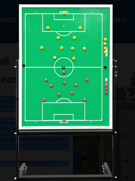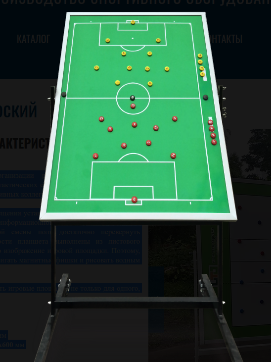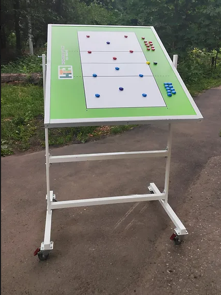 Мобильный стенд для организации работы тренерского штаба. Используется для отработки тактических схем, анализа прошедших игр, судейских и тренерских спортивных коллегий.
