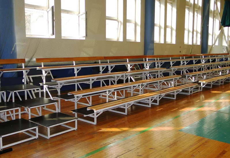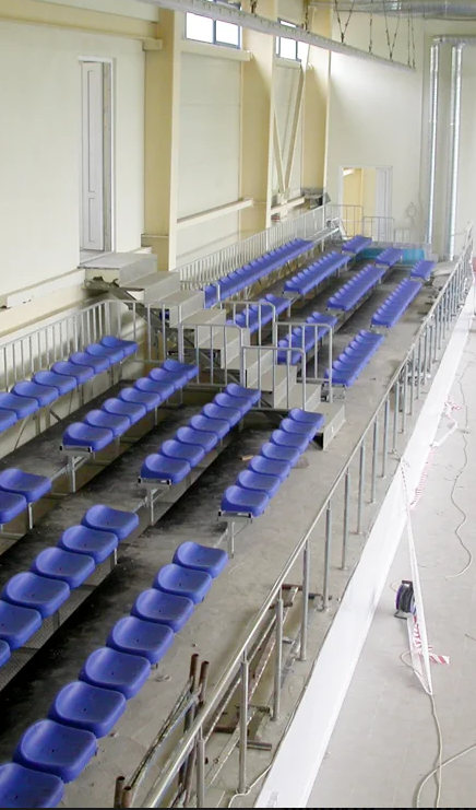 Трибуна стационарная предназначена для размещения зрителей в закрытых спортсооружениях и открытых площадках. Количество рядов - от 2. Ширина секции 2440 мм. В одном ряду секции размещаются 5 человек. Трибуна может оборудоваться сиденьями скамеечного типа или индивидуальными пластиковыми сиденьями.