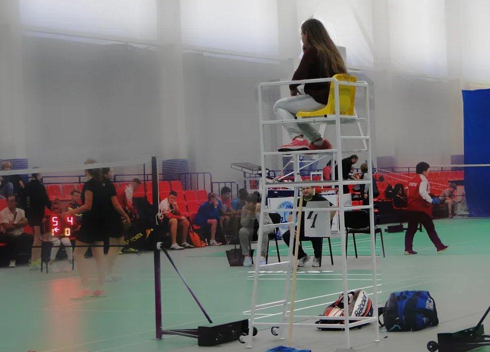 Вышка судейская универсальная - теннис,волейбол. Сварная конструкция из профильной трубы 25х25 мм. Размер 0,5х0,9х2,1 м. Порошковая окраска. Пластиковое 4-х точечное сиденье.